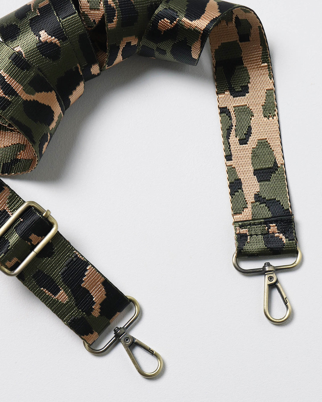 Change the look of your favourite bag and brighten your day by adding this Leopard Webbing Strap in Khaki.