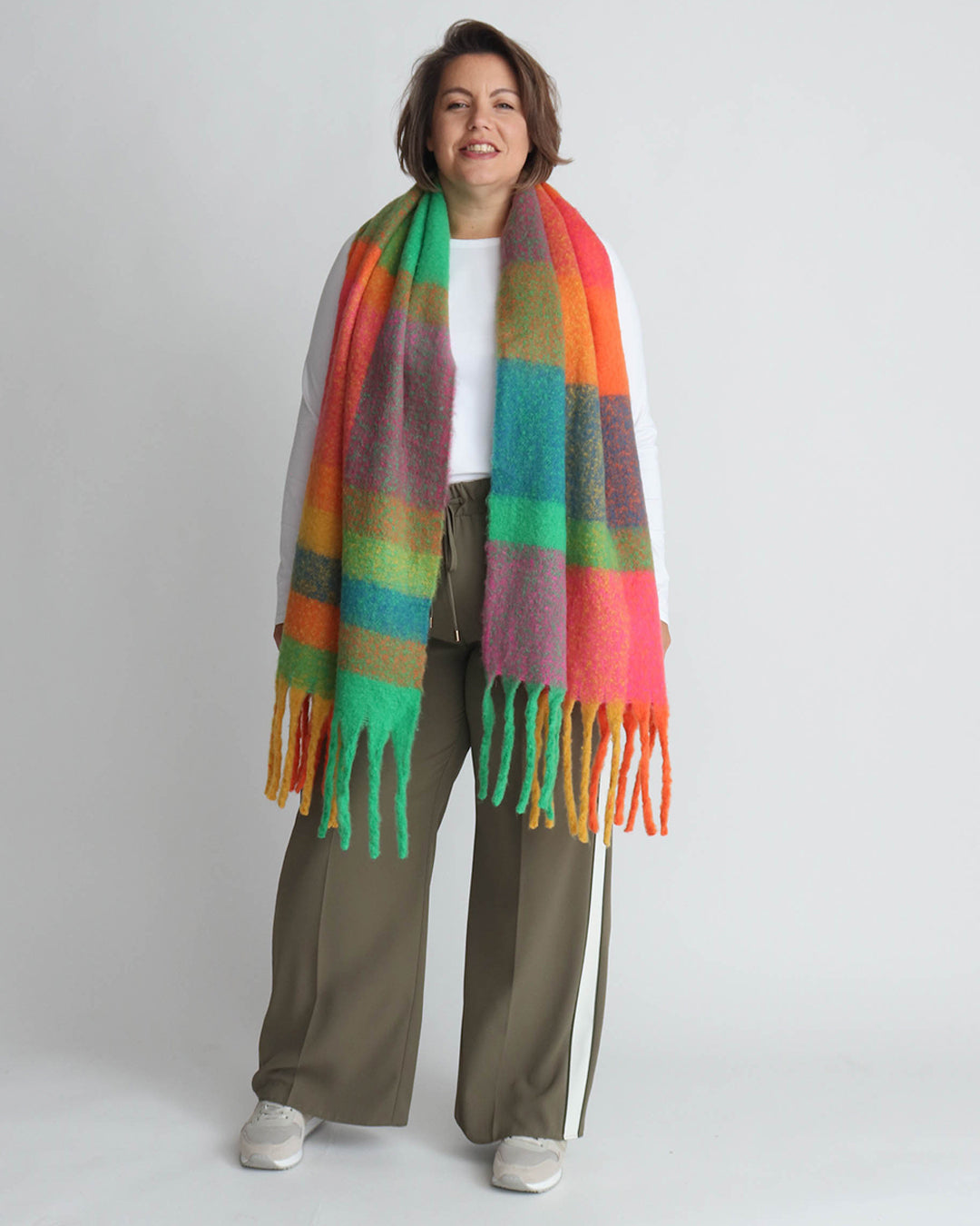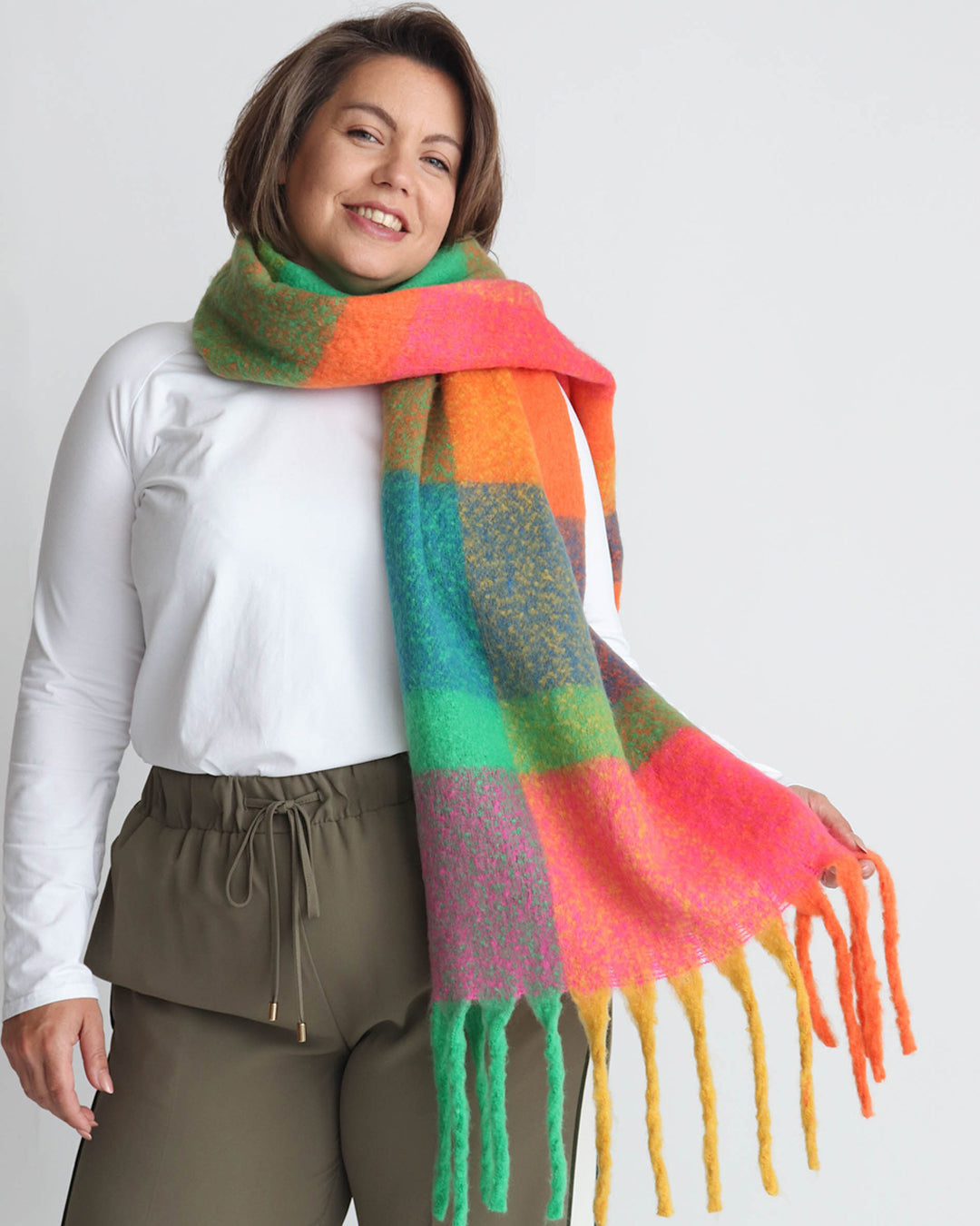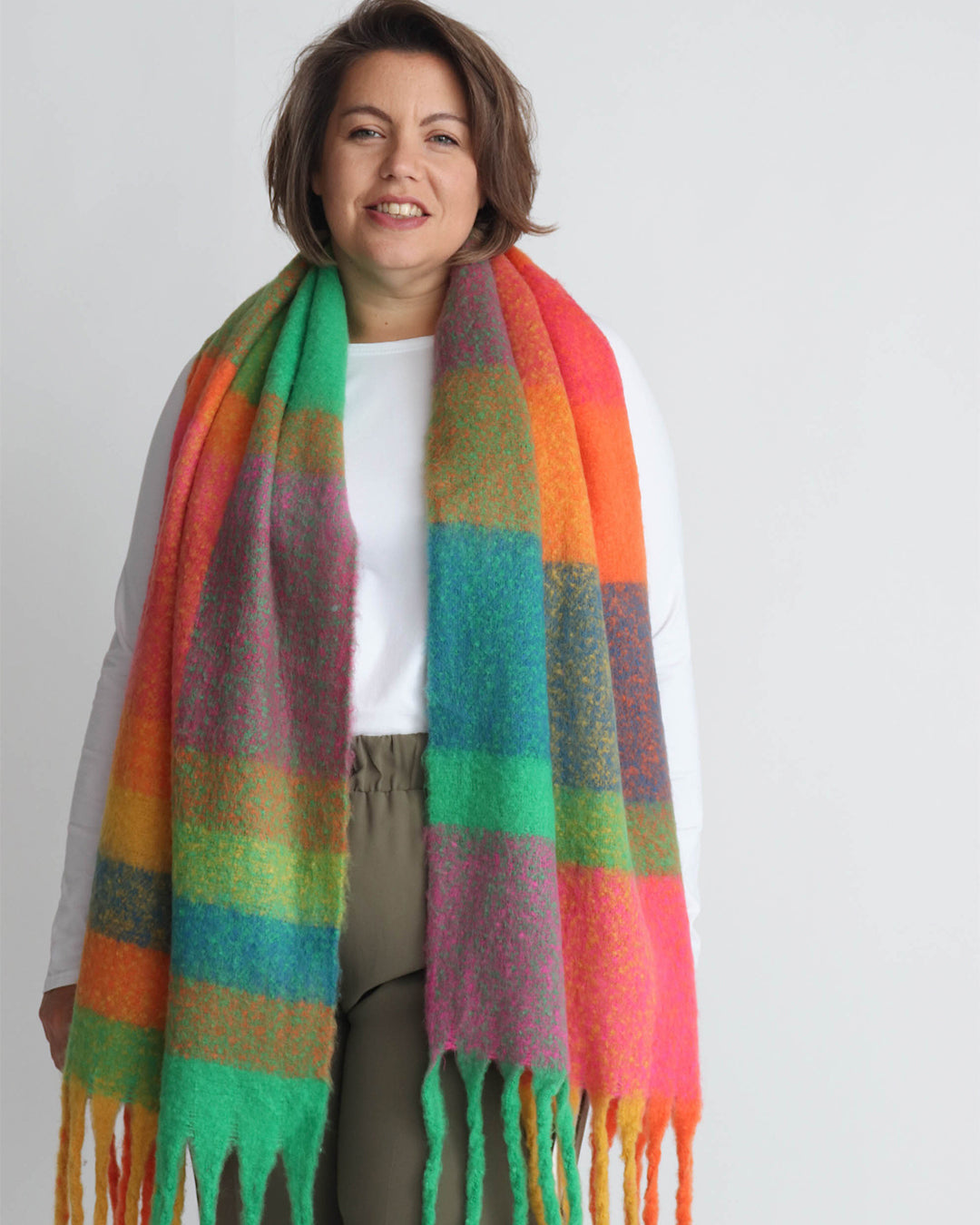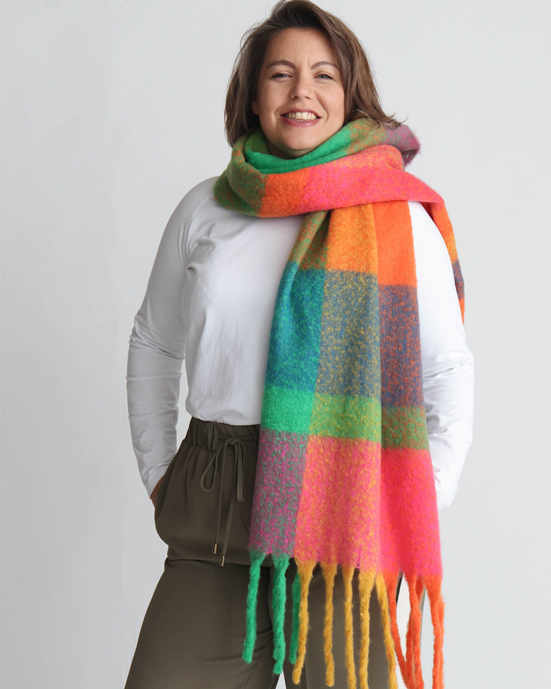 We love our Marisa scarf. Soft, wide and it has tassels! perfect for winter warmth and makes a lovely gift.