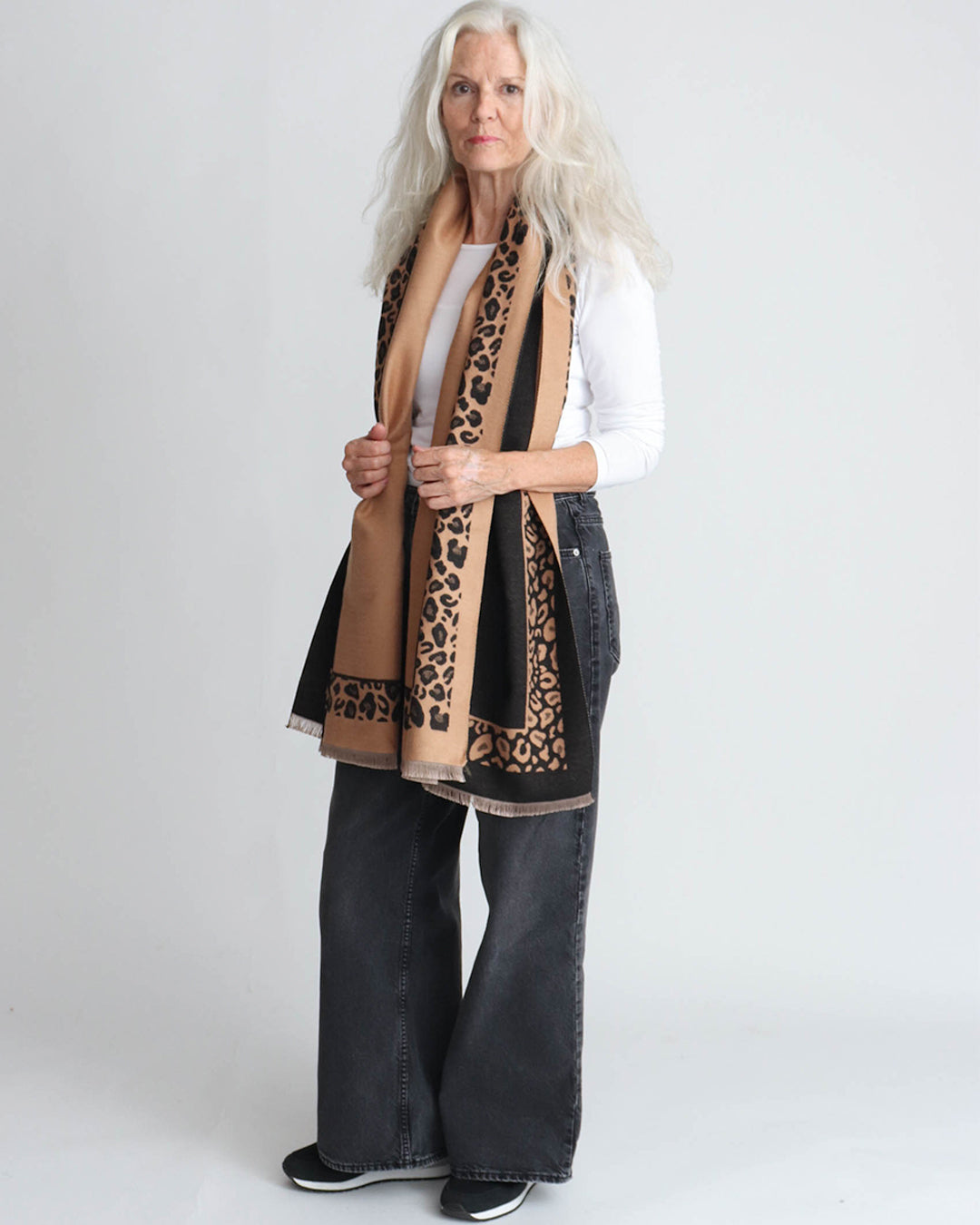 Wear it as a scarf or wear it as a shawl, this reversible medium weight scarf will add just the right amount of Leopard print to your outfit.